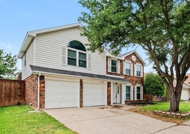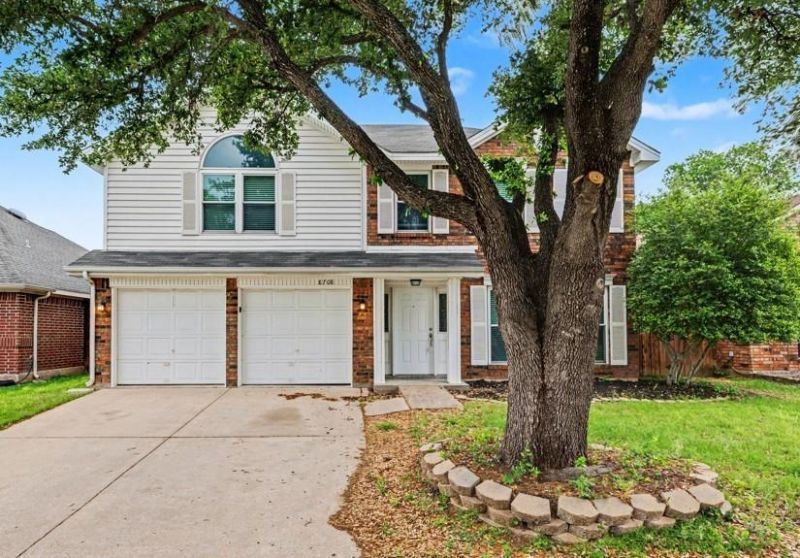 Welcome to 8708 Pedernales Trail situated in the highly sought-after River Trails neighborhood in Forth Worth. Delivering a classic curb appeal, a versatile two-story layout, and an outdoor setup that is hard to find at this price point. The handsome brick exterior, accented by front window shutters, creates a colonial timeless first impression.Inside, the home offers 4 bedrooms and 2.5 baths, with all bedrooms upstairs and fresh new carpet adding a move-in-ready feel. Just off the entry, a formal living and dining combination provides flexible space. The kitchen features white cabinetry, granite countertops, a stainless steel smooth-top range, microwave, dishwasher, and a sunny bay-window breakfast area that opens seamlessly to the family room. A cozy fireplace anchors the family room, while the open-concept design keeps everyone connected.Outside you'll find the property's standout features: an expansive, multi-level wood deck with distinct seating areas, a bar, pergola, and charming coffee table space. The fully fenced backyard is generously sized with room to add a pool and create an ideal outdoor retreat.Location is another major highlight. With no HOA, zoning to River Trails Elementary, Hurst Junior High, and Bell High School convenience is built in. Enjoy nearby parks, walking trails, Trinity River access, Trinity Lakes Station, shopping, dining, major highways, downtown Fort Worth, and DFW Airport. Don't miss out on this great home!